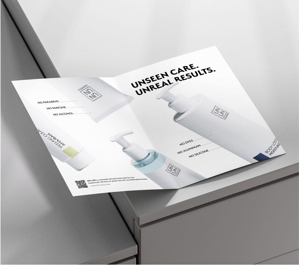 un&un offers a minimal, inclusive skincare approach—gentle, fragrance-free, and effective. Designed for all skin types, the identity reflects simplicity, sensitivity, and timeless care.